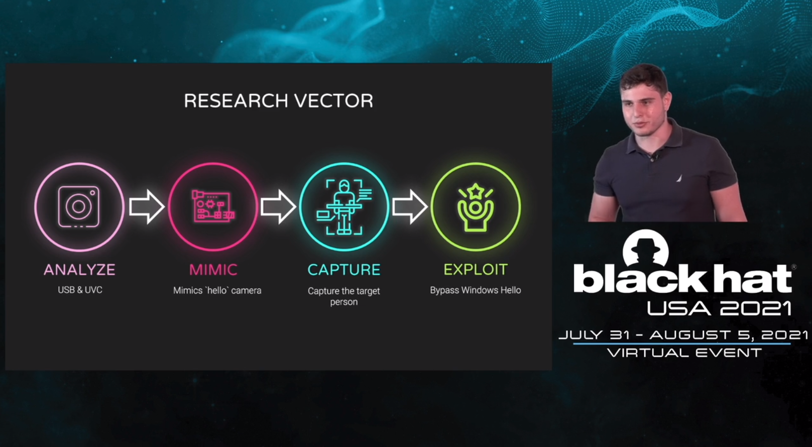 Após analisar extensivamente as especificações USB e usar o software Wireshark para analisar alguns metadados, a equipe de Tsarfati usou uma placa USB para fazer uma mímica de uma câmera compatível com o Windows Hello — usando, para isso, uma implementação oficial da NXP Semiconductors, fabricante de semicondutores. O ataque, que foi batizado de Pass-the-PRT, se baseia em conectar tal dispositivo malicioso contendo uma imagem falsa da vítima.