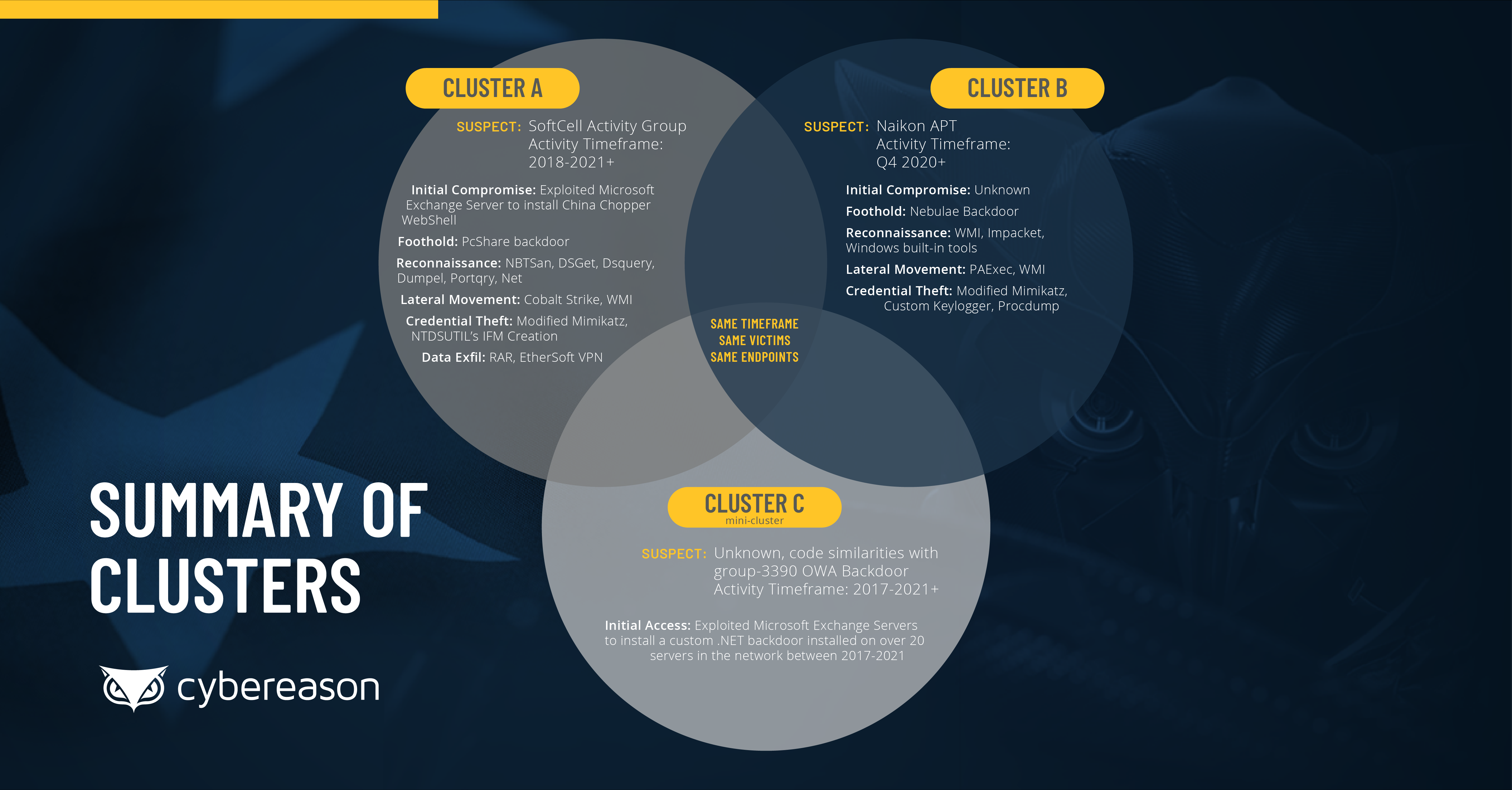 Essas campanhas de ciberespionagem da China contra indústria da telecomunicação do sudeste asiático começaram ainda em 2017 e em alguns casos, os cibercriminosos permaneceram indetectáveis por anos. Assaf Dahan, chefe de pesquisa em ameaças da Cybereason revela que as empresas comprometidas são gigantes e possuem "dezenas de milhões de clientes".
