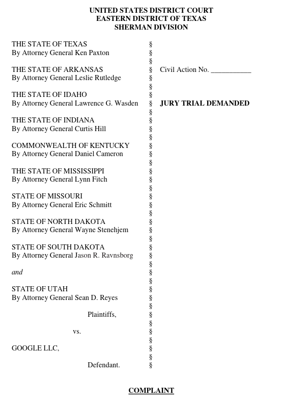 Na reclamação, liderada pelo estado do Texas, muitas partes do conteúdo foram censuradas. No entanto, eles são bem claros com relação a denúncia. “Além de incentivar o Facebook e ceder o mercado de servidores de anúncios de editores [sites e aplicativos] para o Google, o acordo fixa preços e aloca mercados entre o Google e o Facebook como licitantes concorrentes nos leilões de exibição na web dos editores e inventário de publicidade no aplicativo”, escrevem.