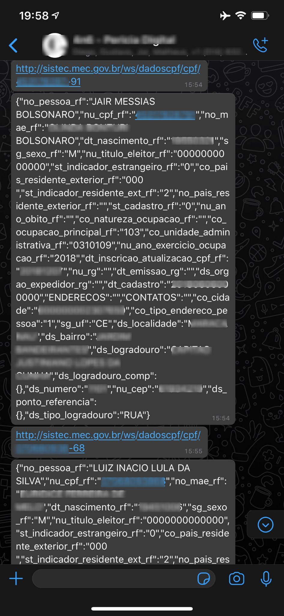 A The Hack não teve tempo hábil de testar e confirmar tal vulnerabilidade — ao experimentarmos o procedimento, na noite deste domingo (31), o problema já havia sido resolvido. Porém, diversas capturas de tela enviadas à redação mostram o bug sendo usado até mesmo para extrair informações do presidente Jair Bolsonaro e do ex-presidente Luiz Inácio Lula da Silva.
