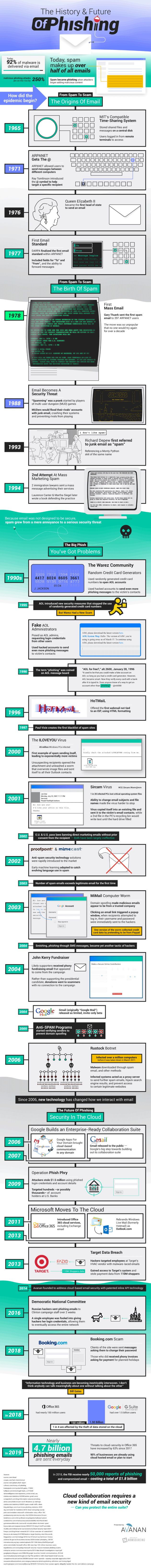 Contudo, uma década depois, o spam renasce em jogos estilo multi-user dungeons (MUD), que são baseados em texto — alguns internautas maldosos “spammavam” outros jogadores para impedi-los de jogar. O termo spam só se tornou popular na década de 90, quando também começaram a surgir os primeiros golpes de phishing. Hoje em dia, cerca de 4,7 bilhões de emails de phishing são enviados diariamente ao redor do globo.