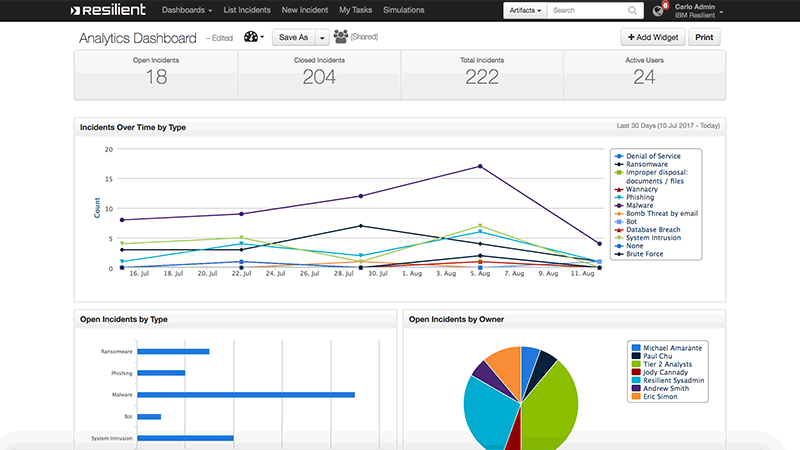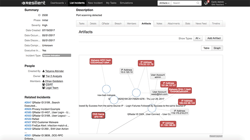 O IBM Resilient traz para o SOC, capacidades de SOAR (Security Orchestration, Automation and Response). Por meio dele, é possível documentar, padronizar, centralizar e medir a resposta a incidente do SOC Next Generation. Dessa forma, é possível identificar gargalos, construir uma base de conhecimento atualizada e identificar a causa raiz dos incidentes de segurança.