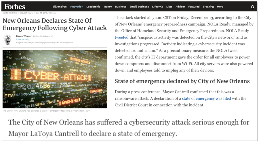 A exponencialidade de relação de dependência entre a sociedade e a informação digital fica evidente diante deste caso real ocorrido em New Orleans em 14 de dezembro de 2019.