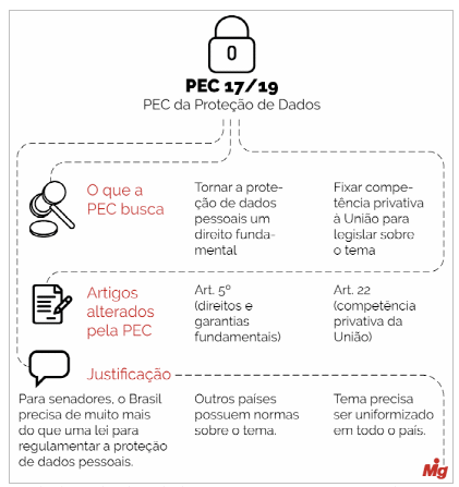 A Comissão Especial sobre Dados Pessoais aprovou em 10.12.2019 a proposta de emenda à Constituição (PEC 17/19) que insere a proteção de dados pessoais na lista de garantias individuais da Constituição.