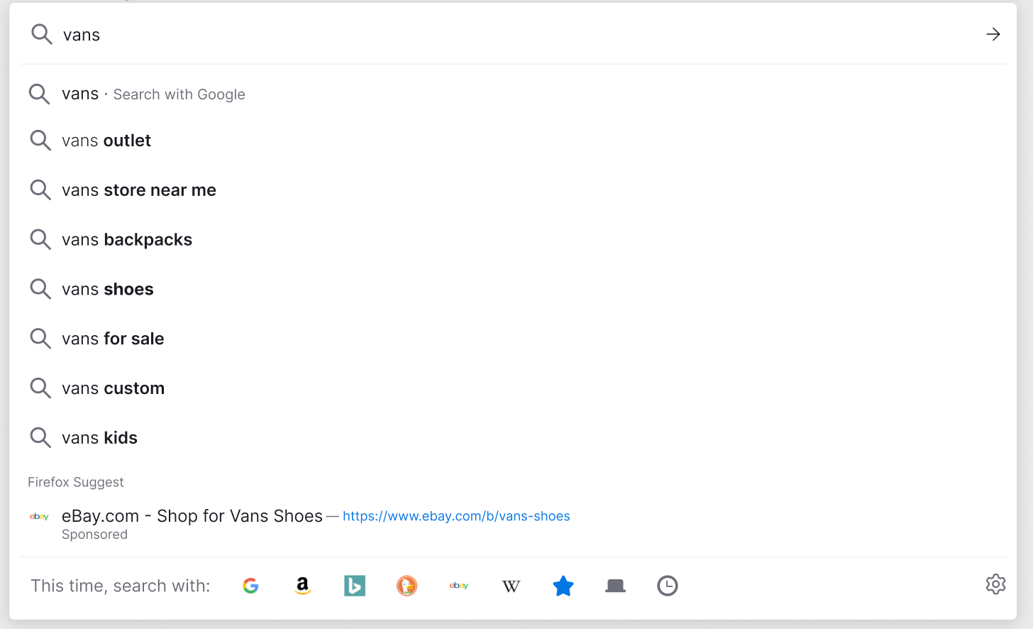 O recurso, batizado de Firefox Suggest, estreou na compilação Firefox v93.0, lançada nesta última terça-feira (5), mas já havia sido anunciado em setembro. Como seu nome já deixa explícito, a feature oferece recomendações relevantes de conteúdos de acordo com os termos digitados na barra de endereços; porém, o que incomodou os internautas foi o fato de que algumas dessas recomendações são, na verdade, de sites comerciais. Um exemplo da própria Mozilla mostra um resultado direcionando ao eBay.