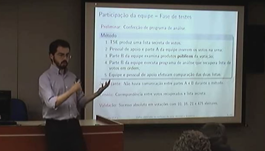“O problema começa quando acaba a parte técnica e começa a parte política. Ficou claro que o que a gente tinha descoberto era muito mais sério do que o TSE afirmava. Teve uma audiência pública que eu fui, expliquei o que a gente fez e teve um debate com o pessoal do TSE, que é sempre quando os problemas começam. Eles afirmam que em nenhuma edição dos testes foi quebrado o sigilo ou a integridade dos votos, o que é simplesmente uma mentira deslavada. Eles vão lá com uma postura de defesa incondicional da urna, como se ela fosse uma obra dos deuses, um santo graal da segurança computacional e que é imune a críticas. Enfim, uma loucura”, diz.