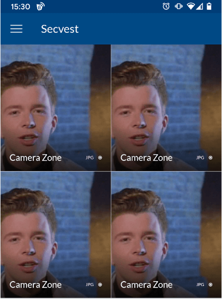 Outro cenário de ataque demonstrado por Niels é a possibilidade de alterar a transmissão, manipulando a imagem que aparece no aplicativo que controla as câmeras.